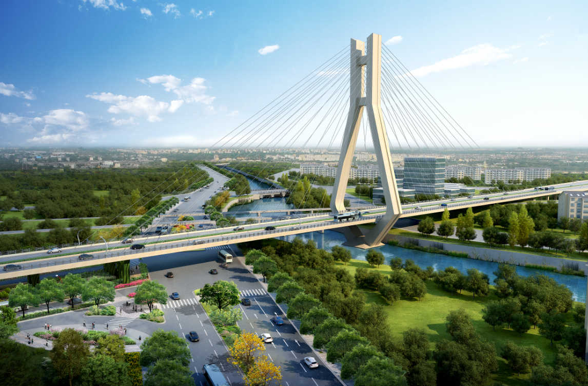 龍巖大道高架橋項(xiàng)目為省、市重點(diǎn)建設(shè)項(xiàng)目,是龍巖中心城市連接南北、溝通新老城區(qū)的重要樞紐,項(xiàng)目位于龍巖市南北交通中心軸和景觀軸線龍巖大道上,全長3395m,包含橋梁和地面道路兩大部分,其中橋梁工程總長2329m,橋?qū)?6m,包含一座190+150m獨(dú)塔斜拉索鋼箱梁主橋(主橋?qū)?6.3m),全線設(shè)計(jì)為雙向六車道,設(shè)計(jì)車速60km/h,在西陂路及人民路處各設(shè)置上下匝道,跨越雙洋路、羅龍東路、人民路、登高西路、西陂路城市主干道,項(xiàng)目總投資約24億元。