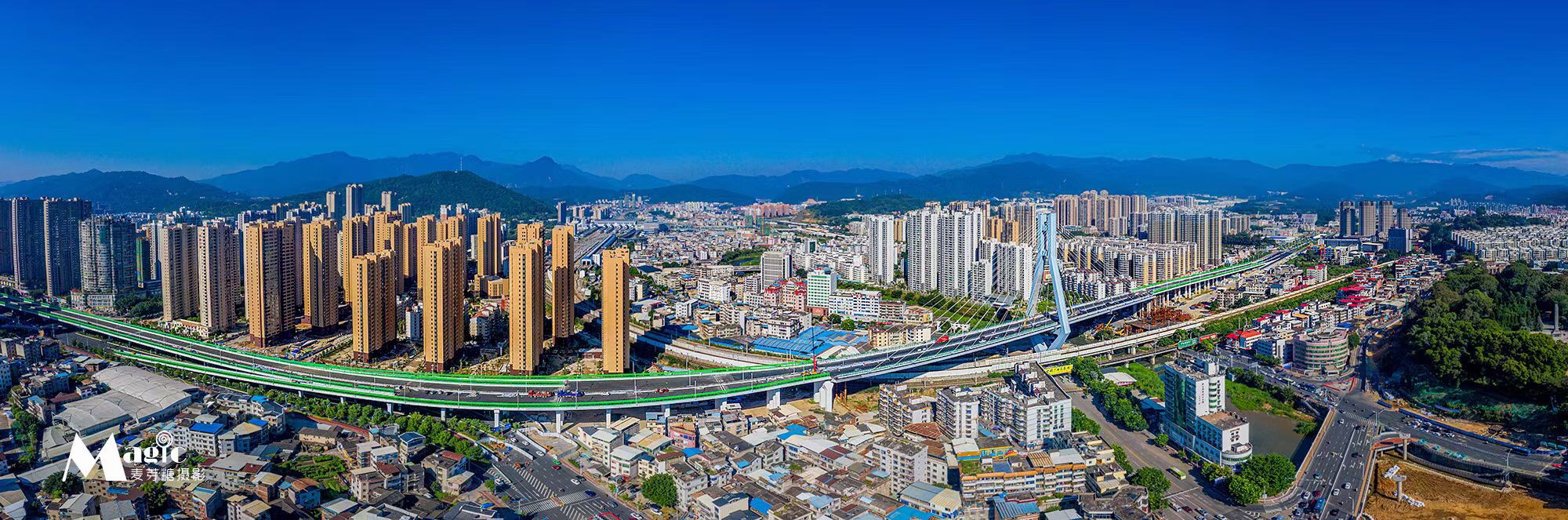 龍巖大橋分為南引橋、中引橋、北引橋和主塔。南引橋2016年6月30日通車,人行道、天橋等附屬工程于2016年11月完工;北引橋西半幅于2016年9月5日通車,東;中引橋地面道路于2017年1月3日實(shí)現(xiàn)通車;全線于2020年11月1日正式通車。