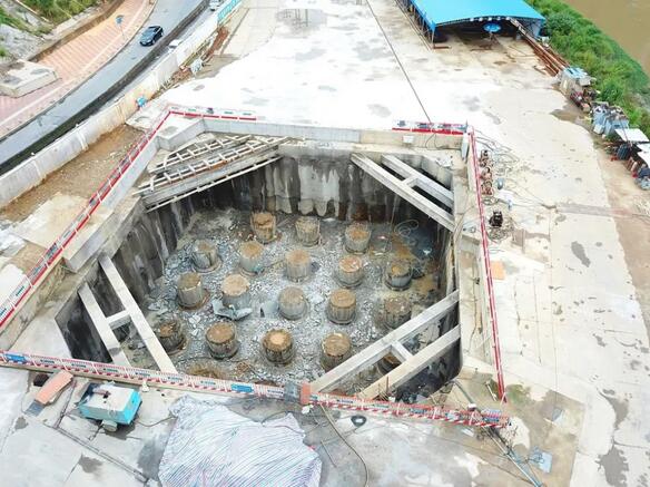 8月24日,繼龍巖大道高架橋主橋主塔樁基、承臺基坑開挖完成后,項目已進入主塔承臺施工階段,主橋封底混凝土澆筑完成0.75米(共1.5米),主橋轉體關鍵設備鑄鋼球鉸已生產(chǎn)完成,現(xiàn)場正進行樁頭破除作業(yè)。由于連續(xù)橫跨贛龍鐵路、龍廈鐵路、羅龍東路、龍津河、雙洋路,主橋采用不對稱跨塔梁同時轉體施工,其轉體總重達2.366萬噸,轉體懸臂173.75m,施工難度巨大。為避免對城市道路及鐵路運行的影響,主橋將采用不對稱跨塔梁施工并分二次轉體,下一步進行控制性工程為兩次主塔轉體施工。